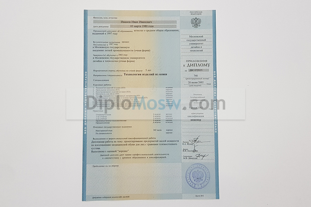 Важно: Заполнение по стандартам, настоящая «мокрая» печать учебного заведения, все подписи ответственных лиц. Можем сделать копию по Вашему образцу.