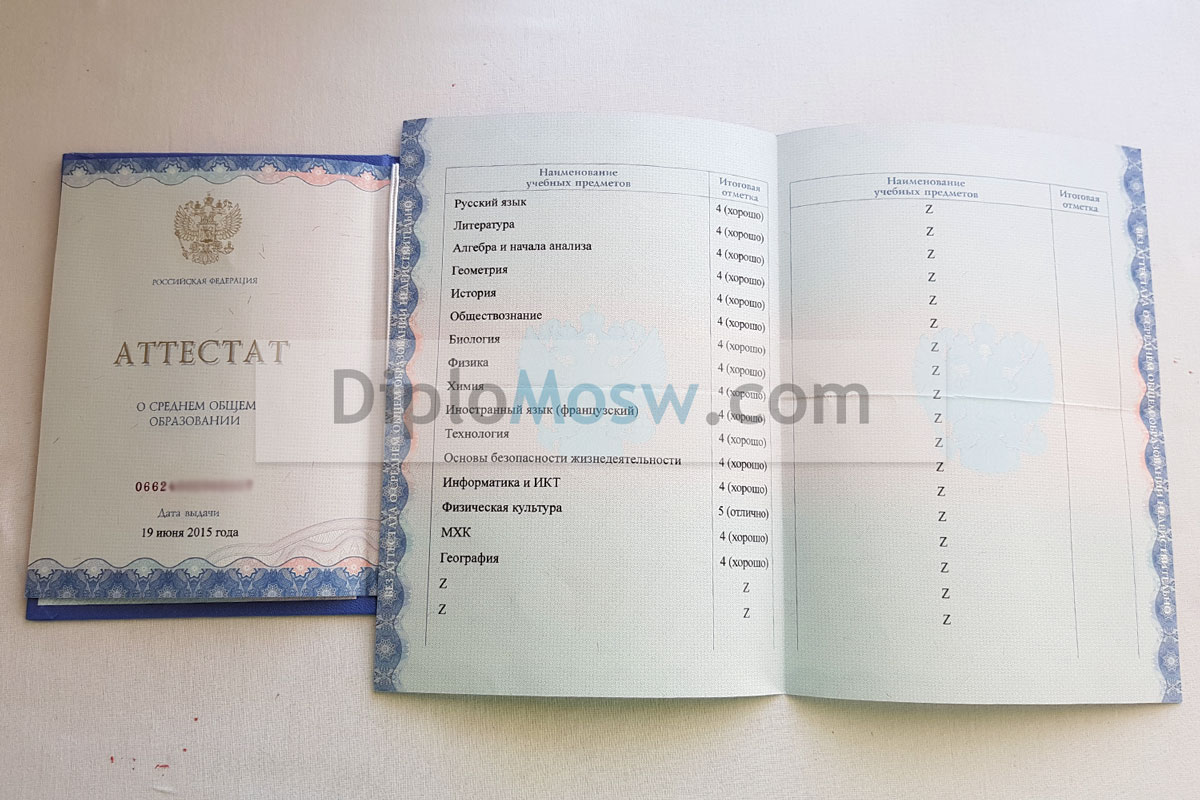 Образцы аттестатов российских школ об окончании 11 классов или 9 классов. Мы делаем документы образовательных учреждений не только Москвы, но и других городов. Заполняем по всем стандартам.